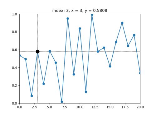 キー入力でmatplotlibのグラフをインタラクティブに操作する方法について解説します。 例として、プロットしたグラフの各点の値を矢印キーで取得するコードを実装します。